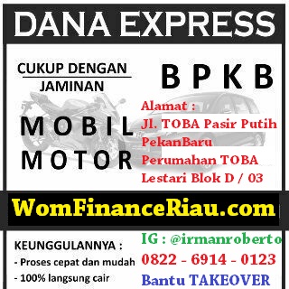 Terima proses pengajuan Gadai BPKB Mobil di KOTA PekanBaru Seluruh RIAU & GadaiBPKB Motor di KOTA PekanBaru SeluruhRIAU, dapatkan pinjaman uang Cepat, dengan Gadai BPKB Mobil di KOTA PekanBaru Seluruh RIAU & GadaiBPKB Motor di KOTA PekanBaru SeluruhRIAU proses mudah serta bunga ringan hanya di WOM Finance.