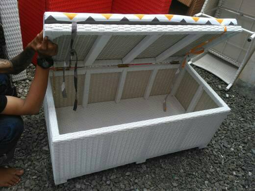 Kursi panjang serbaguna, bisa untuk duduk dan sebagai tempat penyimpanan.