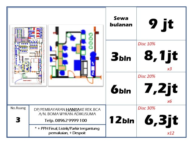 Fasilitas ruang meeting dengan projector, tv, dsb (ada yg gratis ada yg berbayar)