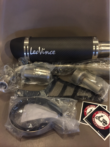 EXHAUST ( KNALPOT ) MERK LEOVINCE DARI ITALY TIPE GP CORSA WARNA CARBONE UNTUK VESPA MATIC