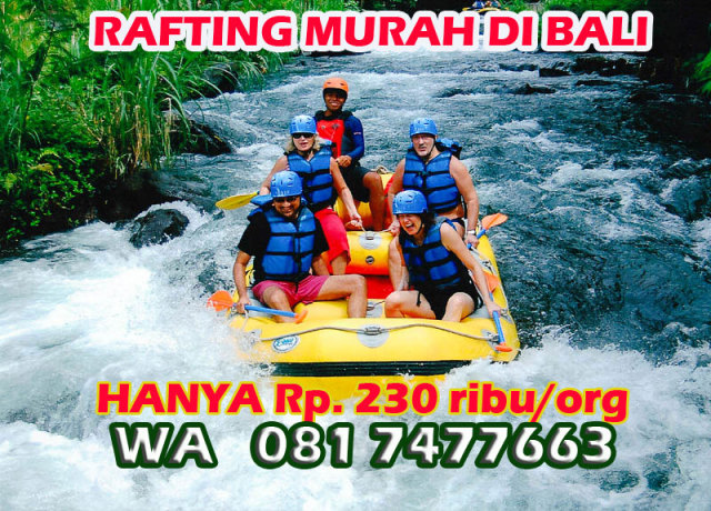 Kami menjual paket rafting di Bali dengan harga yang sangat terjangkau. Dengan hanya 230 ribu per orang tanpa transport atau 350 ribu per orang dengan transport, anda sudah bisa menikmati rekreasi arung jeram yang sangat menyenangkan di Sungai Ayung.