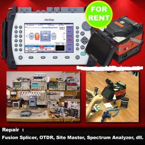 FusionSplicer, OTDR, Site Master, Spectrum analyzer, Signal Generator, Osiloscop, Power Meter, &Bertest Sunlite. BERLAKUUNTUK SEMUA MERK dan SEMUA TYPE. Spectrum analyzer Teronix, Agilent, Anritsu,Advantest,Signal Generator Tekronix, Agilent, Anritsu, Advantest. OsiloscopTextronix, Anritsu,Site Master Anritsu S331D, S332D, S331L, S331E, S332L., OTDRYokogawa AQ- 1200 AQ-7270, AQ-7275 Anritsu MT-9083, Intellity OPX-150 Series, SplicerFujikura 18r, 50s, 60s, Sumitomo T-39, 81c, Fitel S-177, Fitel S-178, INNOIFS-10, IFS-15, JiLong KL-280, KL-300 DVP-730, Ilsintech DLL Power Meter Bird5000EX, 5012 Bertest Sunlite E1, Sunset MTT Alat-alat Laboratorium.