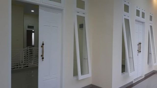 Di buat nyaman dengan ketinggian bangunan tembok setinggi 4 meter Lt bawah dan Lt atas dengan bahan berkwalitas bata merah dan besi baja dari pondasi bawah sampai ke atas bangunan dengan rangka baja ringan dan genteng keramik KIA.