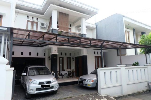 Parkir Kendaraan untuk 3 mobil, 2 kendaraan di Car port ber awning dan 1 kendaraan di dalam garasi tertutup.