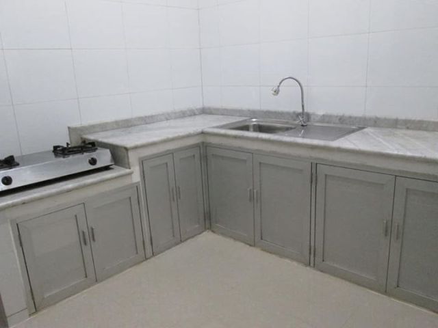 Dapur full keramik, meja dapur dari marmer mewah + kitchen set aluminium.